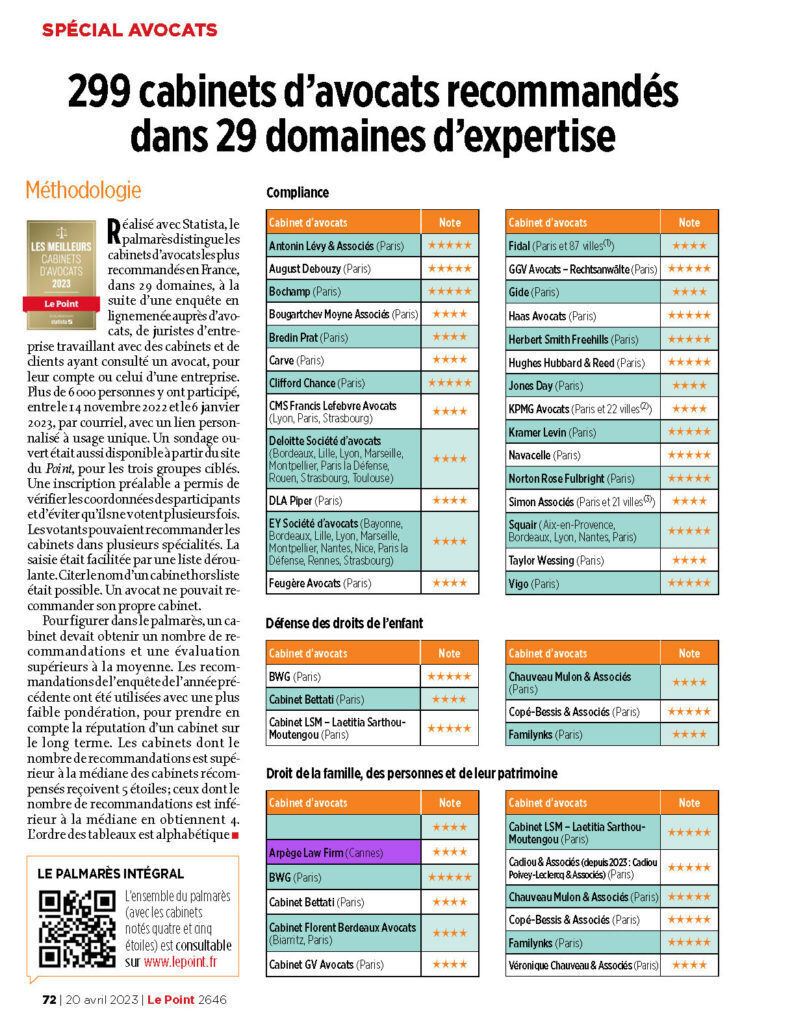 LE CABINET EST DESIGNE POUR LA DEUXIEME ANNEE CONSECUTIVE PARMI LES MEILLEURS AVOCATS DE FRANCE